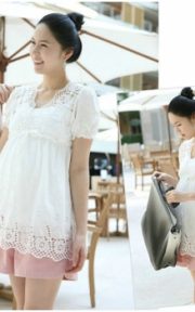 Áo bầu thêu ren hoa đục lỗ đẹp mắt tạo vẻ tinh tế & sang trọng cho các mẹ bầu.